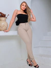 Calça Feminina SKinny Sarja Bege Cintura...
