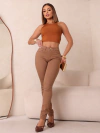 Calça Feminina SKinny Sarja Marrom Cintu...